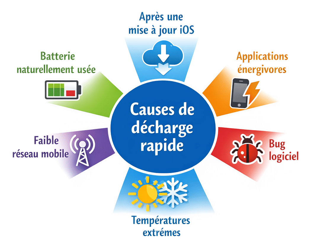 Causes les plus fréquentes de décharge rapide de la batterie iPhone