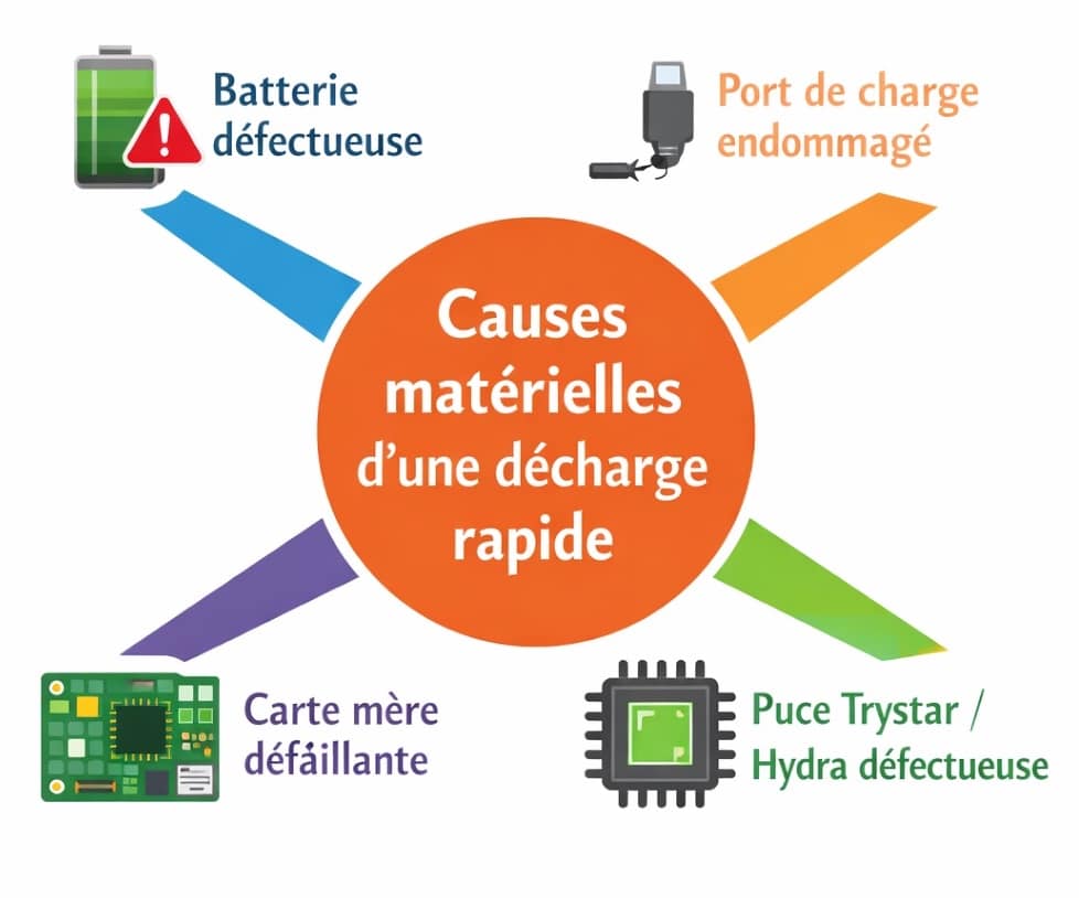 Il peut arriver qu’un problème matériel soit à l’origine d’une batterie qui se vide trop vite. Dans ce cas, seul un diagnostic précis permet d’éviter une réparation inutile.