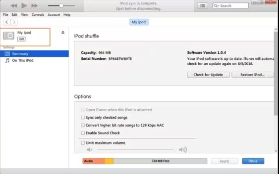 Fenêtre de synchronisation iPod dans iTunes / Musique sur Mac. Commencez par cette étape avant de poursuivre vos investigations.