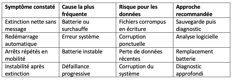 Une extinction brutale n’est pas seulement un incident gênant. C’est un signal. Un Mac peut encaisser un arrêt isolé, mais les extinctions répétées fragilisent progressivement les données et le système.