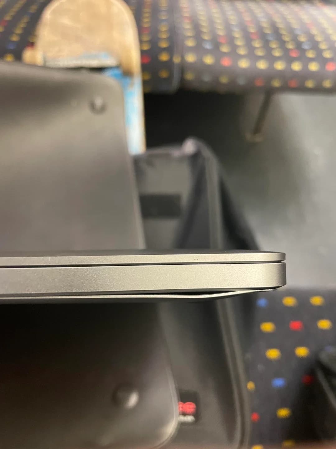 Le dessous d’un MacBook déformé indique aussi un problème de batterie gonflée.