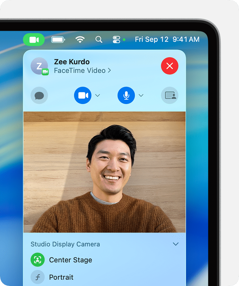 • Vérifiez si les options Center Stage ou Desk View apparaissent dans le menu Effets vidéo.