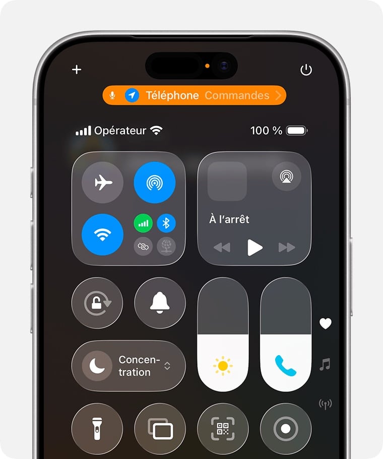 - Une fois la communication lancée, glissez votre doigt depuis le coin supérieur droit de l’écran pour ouvrir le Centre de contrôle.