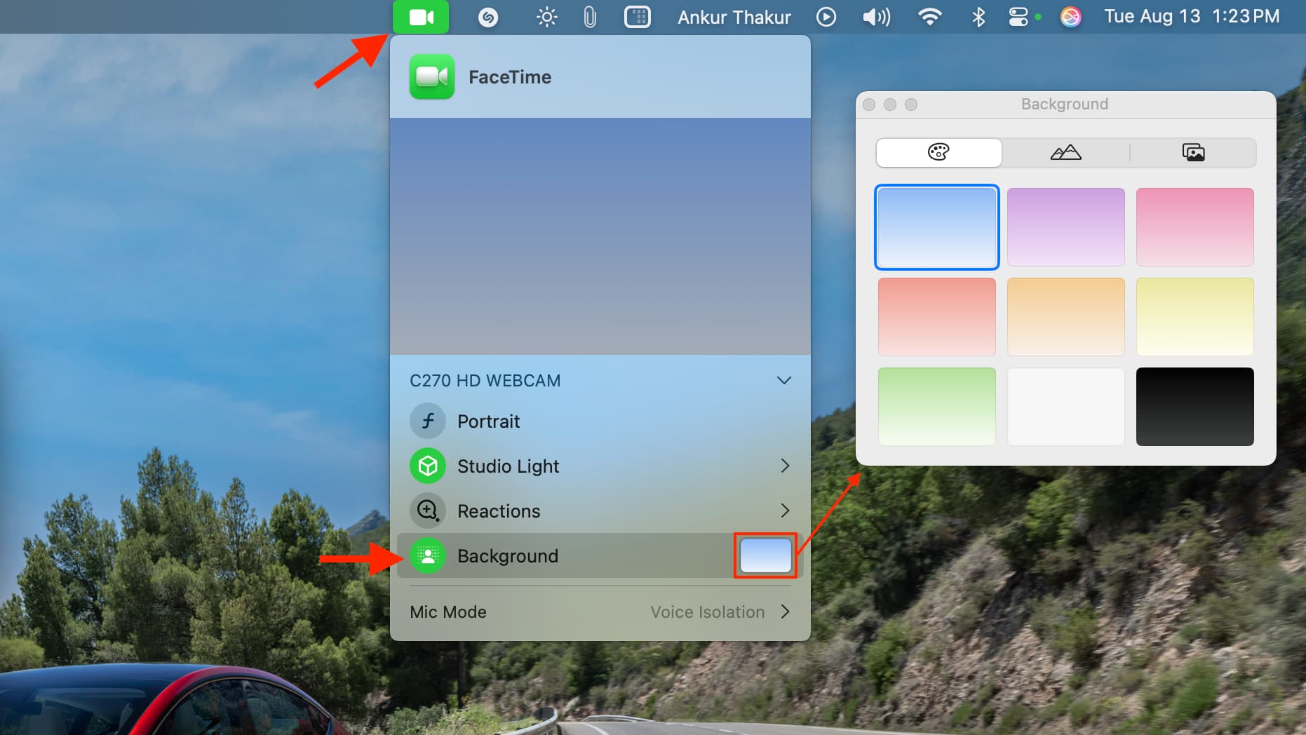 - Pendant l’appel, cliquez sur Menu Vidéo -> Éclairage de studio (sous macOS Sonoma).